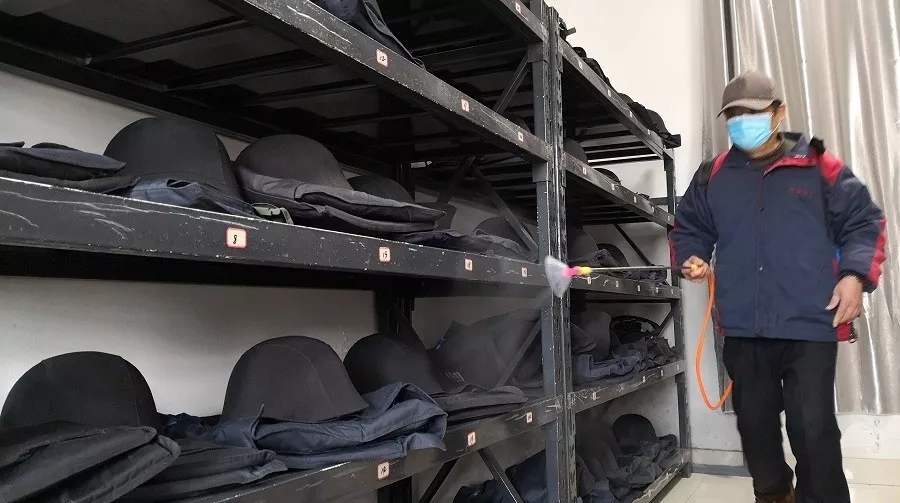 押運(yùn)隊(duì)伍在出車前和返回公司后,加強(qiáng)對(duì)個(gè)人裝備和運(yùn)鈔車的消毒工作,并安排專人每日對(duì)押運(yùn)裝備和押運(yùn)辦公場所進(jìn)行消毒,確保押運(yùn)過程零傳染。
