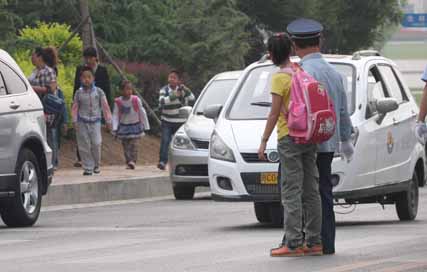 記者注意到,雖然絕大多數(shù)學(xué)生都由家長護(hù)送上學(xué),但獨(dú)自上學(xué)或結(jié)伴上學(xué)的情況也非常普遍。7時(shí)16分,一位小女孩已經(jīng)走到了馬路中間,面對疾馳車輛有些害怕,就停在了馬路中間,保安哥連忙示意最前面的一輛出租車停下來,然后他護(hù)送女孩穿過馬路,走進(jìn)校園。