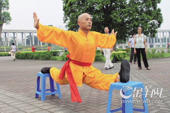 “農(nóng)民工組合”中的武者張中心來自河南孟州,體魄結(jié)實(shí),剃著光頭,頗有點(diǎn)少林寺武僧的范兒。張中心告訴記者,自己出生在有著“武術(shù)之鄉(xiāng)”之稱的孟州化工鎮(zhèn),從小就對武術(shù)癡迷。與王文正一樣,張中心同樣從小家境貧寒,早年父親得了精神病,家里沒了頂梁柱,張中心也是小學(xué)沒畢業(yè)便輟學(xué)了,兄妹三人都是母親一人拉扯大。由于父親精神病發(fā)作,出去惹了不少事,遭到了鄰居的不解和謾罵,兄妹幾個也常被欺負(fù),于是張中心暗下決心,學(xué)好武術(shù),保護(hù)家人不被欺負(fù)。說到這,張中心覺得自己走上習(xí)武之路的初衷有些偏頗,“習(xí)武之人不可為一己之私,以怨報怨,有違武術(shù)之道,所以現(xiàn)在打算免費(fèi)傳授一些武術(shù)給大家,當(dāng)做健身之道?!?/SPAN>