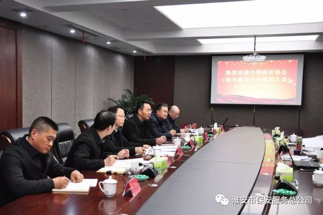 2017年1月17日,中石油安全環(huán)保研究院工程師崔少樸、中國保安協(xié)會劉偉剛、江蘇省保安協(xié)會副秘書長王峰等一行來到總公司,對總公司開展海外安保服務(wù)情況進行調(diào)研,總經(jīng)理婁伯翱和駐外分公司、行政中心、財務(wù)中心、人力資源中心等部門負責(zé)人一同參加了調(diào)研。