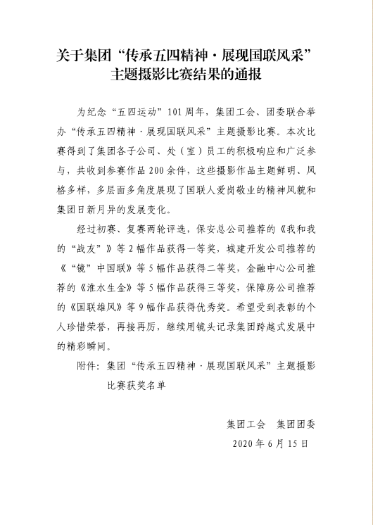 為紀念“五四運動”101周年,國聯(lián)集團工會、團委聯(lián)合舉辦“傳承五四精神·展現(xiàn)國聯(lián)風采”主題攝影比賽。保安總公司選送胡偉芳和李晉戎的作品《我和我的“戰(zhàn)友”》等2幅作品,以鮮明的主題、多樣的風格,從多層面多角度展現(xiàn)了犬防隊員愛崗敬業(yè)的風貌和淮保人行穩(wěn)致遠的精神,獲得了本次攝影大賽的一等獎。