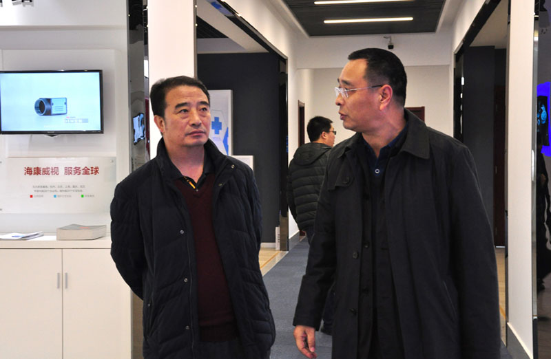 黃秘書長(zhǎng)在婁伯翱總經(jīng)理陪同下參觀公司智慧淮安技防展廳