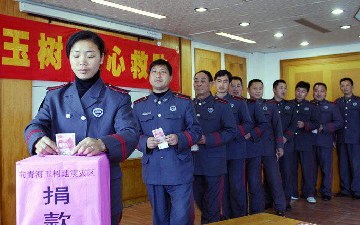 連日來,淮安市保安服務(wù)總公司充分發(fā)揚“一方有難、八方支援”的集體主義精神,通過捐款等形式積極向玉樹地震災(zāi)區(qū)奉獻愛心、貢獻力量。