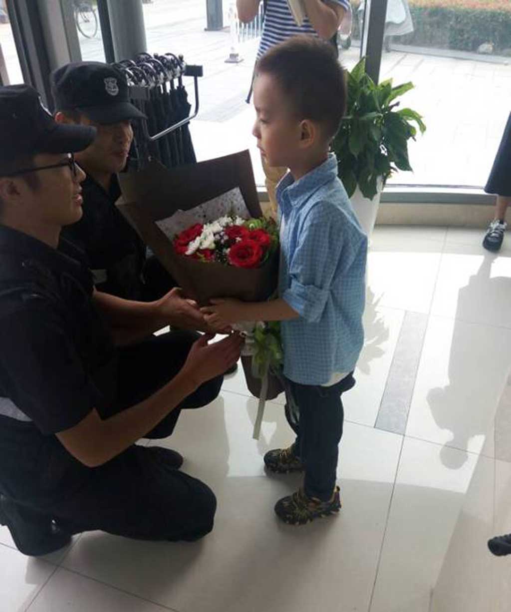2016年10月5日下午在萬達廣場警務(wù)工作服務(wù)站內(nèi),在淮安日報社、淮安電視臺等記者的“咔咔”攝像聲中,談亦童小朋友手捧鮮花來到隊員胡繼田與孫慧棟兩名隊員面前,連聲說“謝謝叔叔!謝謝叔叔!”原來是10月4號晚8時左右,隊員胡繼田與孫慧棟一組正常巡邏到A區(qū)域時,發(fā)現(xiàn)車庫處,一女同志懷抱一小孩,吃力地往前跑,邊跑邊哭。這時巡邏隊員發(fā)現(xiàn),立即沖上前,問明情況后,抱過小孩直奔附近中山醫(yī)院,沒有找值班醫(yī)生,后立馬往八二醫(yī)院跑。聞訊趕來的巡邏車,帶上他們一同趕往八二醫(yī)院。在路途中孩子的媽媽童女士,急的失聲痛哭。原來童女士帶著孩子逛商城時,孩子吃了牛皮糖不小心堵住氣管,孩子一度臉色蒼白,痛苦的呻吟。在往醫(yī)院奔趕得途中,由于顛簸,將牛皮糖顛下去了。到八二醫(yī)院,醫(yī)生檢查后確認(rèn)化險為夷。醫(yī)生說如果不是保安及時處置,孩子很可能就窒息了,十分危險。于是出現(xiàn)開頭的一幕。萬達警務(wù)工作服務(wù)站是淮安市公安局剛剛組建的新的惠民服務(wù),總公司派駐的50名輔警人員。自9月24日組建以來,傳承了淮安保安隊伍優(yōu)良品德,嚴(yán)謹(jǐn)?shù)墓ぷ髯黠L(fēng),過硬的素質(zhì),得到清河公安分局領(lǐng)導(dǎo)的高度贊揚,得到社會廣泛認(rèn)可!引起淮安電視臺以及淮安日報等媒體的關(guān)注和贊美!