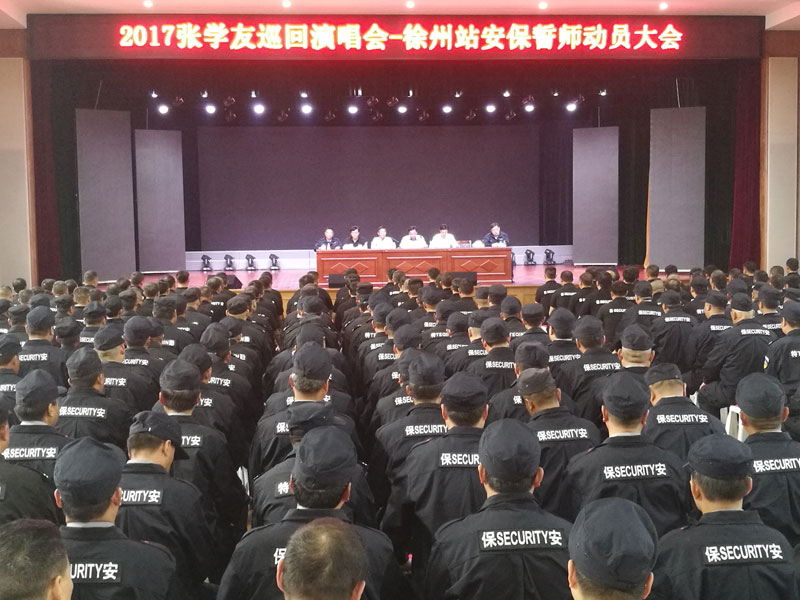 5月13日,“A CLASSIC TOUR學(xué)友·經(jīng)典世界演唱會(huì)”徐州站,人防中心組織450名特勤隊(duì)員,提前加強(qiáng)大型活動(dòng)安保專項(xiàng)培訓(xùn),并5月12日上午在總公司會(huì)議室召開動(dòng)員會(huì),從大局意識(shí)、組織紀(jì)律、崗位職責(zé)、警容督查、后勤保障等各方面作了周密部署。在徐州奧體中心,淮安保安人嚴(yán)明的組織紀(jì)律,高度負(fù)責(zé)任的工作責(zé)任心受到了主辦方的高度認(rèn)可。