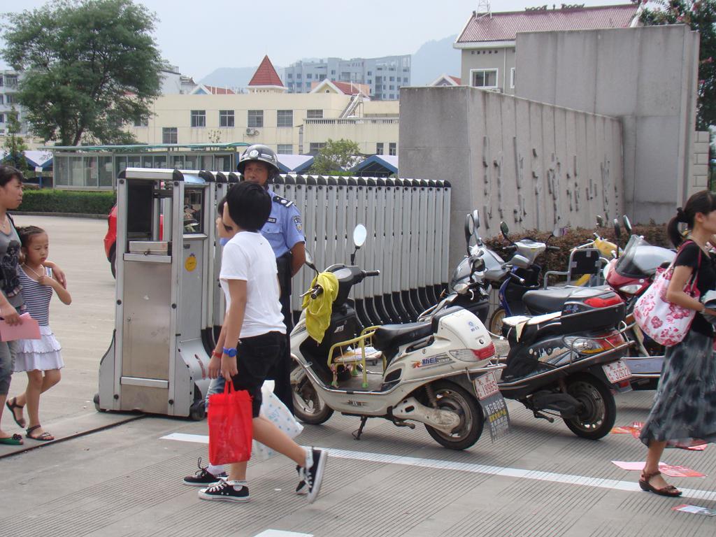 當(dāng)不法歹徒準(zhǔn)備對學(xué)生實施侵害時,校園保安就是學(xué)生們的第一道壁壘。昨天是龍泉市中小學(xué)及幼兒園開學(xué)的日子,龍泉市市區(qū)的學(xué)校的校門口都站立著兩名身材魁梧、精神抖擻的校園保安在執(zhí)勤,保證師生的安全。