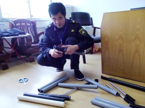 寧波安邦護(hù)衛(wèi)有限公司象山大隊(duì)經(jīng)檢查部分防彈衣帶子失去粘性,狼牙棒外殼出現(xiàn)破損,影響了押運(yùn)形象和存在安全隱患。鑒于這種情況,大隊(duì)不等不靠,積極開動(dòng)腦筋,4月7日,自購(gòu)了PVC管、電工膠布等材料,隊(duì)員利用午休時(shí)間,分工協(xié)作,動(dòng)手修補(bǔ)了防彈衣15件,制作了狼牙棒套20個(gè),有效降低了公司運(yùn)行成本,提高了隊(duì)員愛護(hù)裝備意識(shí)。