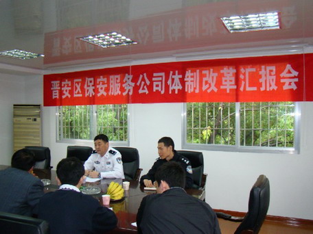 5月4日,福建省公安廳治安管理總隊(duì)副總隊(duì)長(zhǎng)趙魯進(jìn)一行到福州市晉安保安服務(wù)公司調(diào)研工作。在認(rèn)真聽(tīng)取了福州市公安局治安支隊(duì)副支隊(duì)長(zhǎng)陳革和晉安區(qū)委政法委副書記、區(qū)綜治辦主任夏冬林就自招保安員監(jiān)管和晉安區(qū)保安企業(yè)改制工作情況匯報(bào)后,趙副總隊(duì)長(zhǎng)強(qiáng)調(diào):一是保安企業(yè)和保安隊(duì)伍不能脫離公安機(jī)關(guān)主導(dǎo)和監(jiān)管。福州市根據(jù)保安條例精神,結(jié)合本地實(shí)際,選擇晉安區(qū)保安服務(wù)公司作為保安企業(yè)改制的試點(diǎn)單位,對(duì)現(xiàn)有保安企業(yè)如何改制進(jìn)行了有益的探索。保安企業(yè)改制必須依法進(jìn)行,堅(jiān)持公安機(jī)關(guān)的主導(dǎo),保安企業(yè)和保安隊(duì)伍不能脫離公安機(jī)關(guān)監(jiān)管,確保這支隊(duì)伍朝著正確健康方向發(fā)展;二是做強(qiáng)做大保安隊(duì)伍。要充分認(rèn)識(shí)保安服務(wù)市場(chǎng)國(guó)際化趨勢(shì)和保安工作所面臨的實(shí)際問(wèn)題,充分發(fā)揮多年來(lái)保安企業(yè)先行的優(yōu)勢(shì),大力拓展保安服務(wù)領(lǐng)域,努力提高保安服務(wù)科技含量和服務(wù)質(zhì)量,讓現(xiàn)有保安企業(yè)和保安隊(duì)伍茁壯成長(zhǎng),進(jìn)一步做大做強(qiáng)國(guó)有資產(chǎn),以更加強(qiáng)大的競(jìng)爭(zhēng)力迎接市場(chǎng)的開(kāi)放。三要加強(qiáng)自招保安員管理。要加強(qiáng)自招單位保安工作和保安隊(duì)伍規(guī)范化建設(shè),加強(qiáng)物業(yè)保安等自招保安員日常監(jiān)督管理工作,科學(xué)合理地安排保安員考試發(fā)證工作,加快保安員十指指紋信息的采集和審查工作。