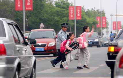 “每天早晨上學(xué)高峰時(shí)段,人行道上總會出現(xiàn)那個(gè)門衛(wèi)大哥的身影,匆匆又匆匆地往返人行道兩端,帶著孩子們安全穿過車流……”這是一位家長近期在微博上的一段留言。