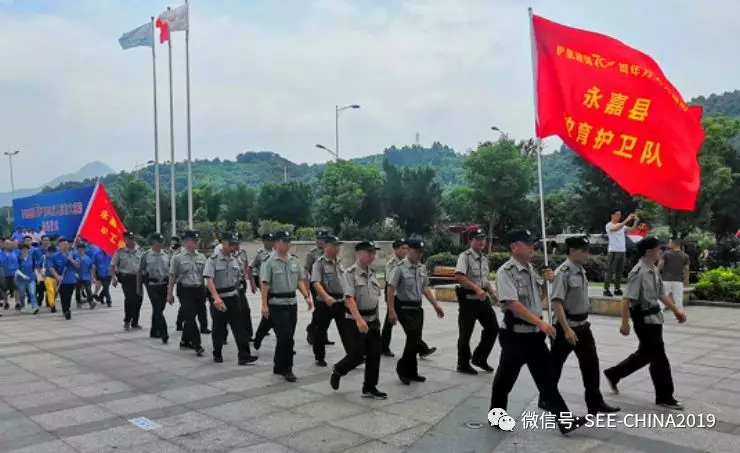 由永嘉縣委政法委和縣公安局主辦,多部門參加的“護(hù)航建國70周年萬人百日大巡防活動”,于2019年7月1日上午在縣城體育館廣場啟動。永嘉縣保安公司教育安保大隊(duì)精心組織20人的教育護(hù)衛(wèi)隊(duì)代表縣保安服務(wù)有限公司參加此次活動。