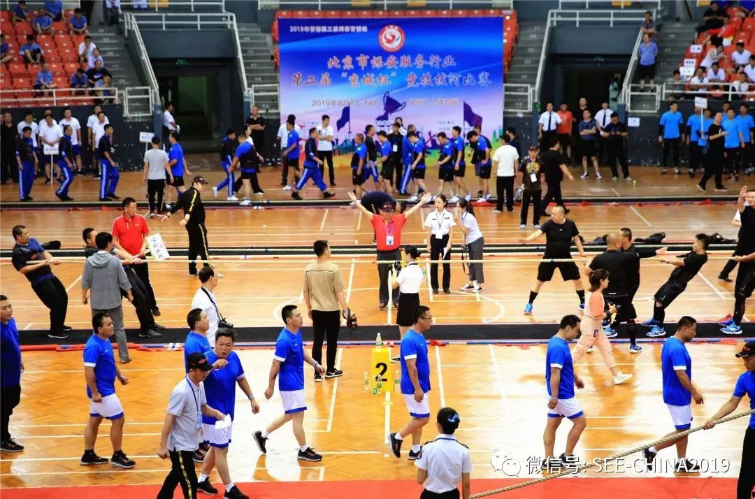 8月13-14日,2019年首都職工系列體育活動(dòng)暨北京市保安服務(wù)行業(yè)第二屆“京城杯”競(jìng)技拔河比賽在北京工人體育館圓滿結(jié)束。本屆賽事由北京保安協(xié)會(huì)、北京市保安服務(wù)行業(yè)工會(huì)聯(lián)合會(huì)主辦,北京京城保安服務(wù)有限公司承辦,北京職工體育服務(wù)中心協(xié)辦。本屆賽事共有113支代表隊(duì)參賽、共進(jìn)行了495場(chǎng)激烈比拼,比賽規(guī)模創(chuàng)世界之最。經(jīng)過(guò)兩天緊張激烈的角逐,最終保總豐臺(tái)代表隊(duì)榮獲本屆賽事季軍、保總崇文代表隊(duì)榮獲本屆賽事亞軍、振遠(yuǎn)中心代表隊(duì)榮獲本屆賽事冠軍。