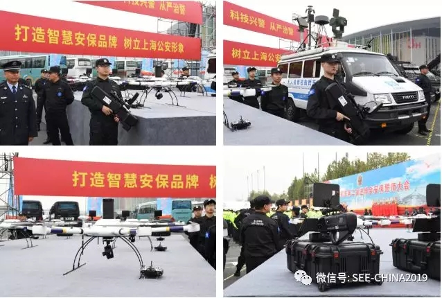 上海保安集團(tuán)警盾無人機(jī)團(tuán)隊(duì)亮相誓師大會(huì)現(xiàn)場,展示新型科研設(shè)備。