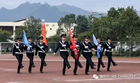 開幕式上,溫州市保安服務(wù)總公司作為此次活動的冠名單位,表演國旗入場與升旗儀式。當護旗手昂首挺胸,邁著堅定的步伐,踏過嶄新的跑道,一路護送國旗走向主席臺,伴隨著慷慨激昂的《義勇軍進行曲》,五星紅旗冉冉升起,正式拉開了技能競賽活動的序幕,極大地鼓舞了隊員們的參賽士氣。
