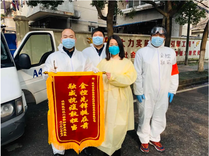 3月8日,漢陽區(qū)五里墩街五麒里社區(qū)向融威公司抗疫一線值守人員贈送感謝信和錦旗