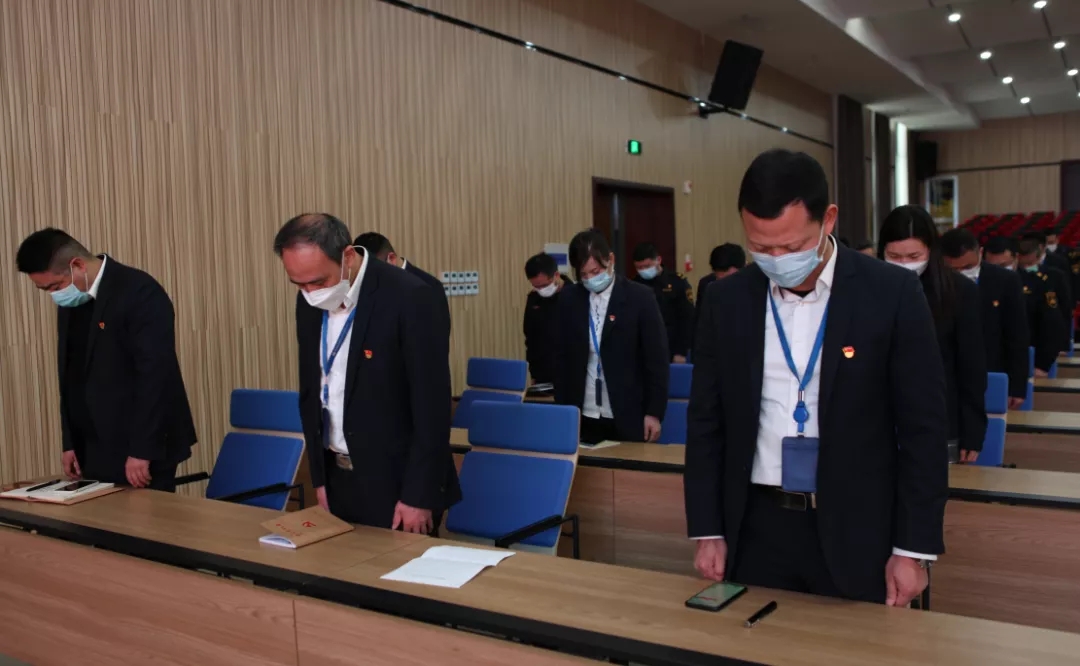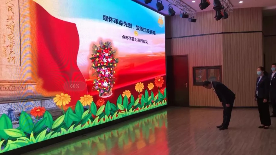 伴隨著低沉的哀樂聲,70多名公司黨員、團員一一上臺,向線上英雄紀念碑敬獻電子花圈,向英烈們默哀,寄托深深緬懷之情。