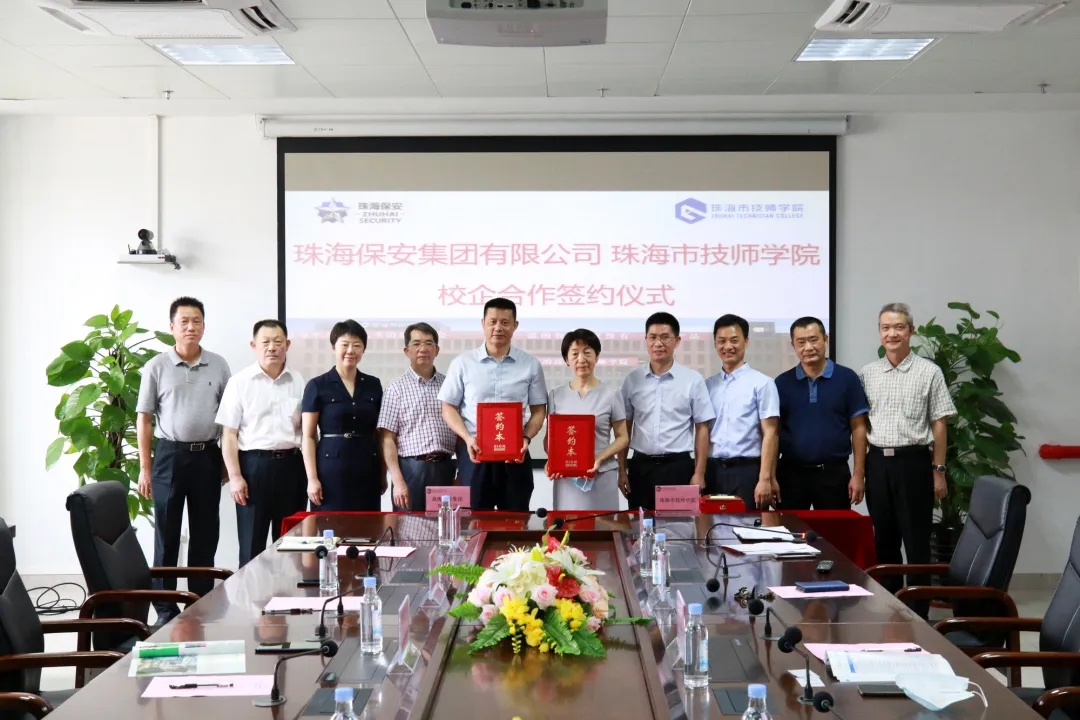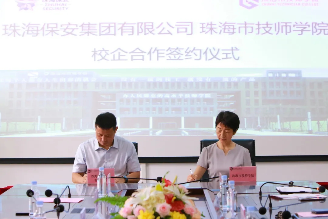 5月29日珠海保安集團(tuán)有限公司、珠海市技師學(xué)院校企合作簽約儀式在技師學(xué)院舉行,珠海市人社局副局長李邦耀,珠海市國資委三級調(diào)研員黎明,珠海市技師學(xué)院黨委書記、校長高小霞,珠海保安集團(tuán)有限公司黨委書記、董事長、總經(jīng)理申智勇,澳門保安行業(yè)協(xié)會副會長葛俊平,珠海市保安協(xié)會秘書長郭文光,以及珠海市人社局、珠海市技師學(xué)院、珠海保安集團(tuán)有限公司等相關(guān)人員出席了簽約儀式。