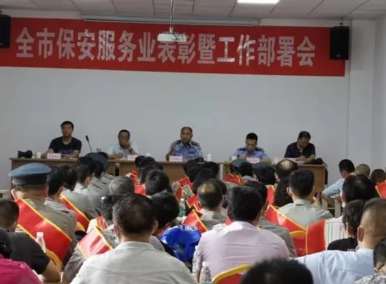 近日,馬鞍山市公安局保安管理支隊、市保安行業(yè)協(xié)會在金江保安學(xué)校召開全市保安管理暨表彰工作會議,表彰獎勵2019年表現(xiàn)優(yōu)秀的保安公司和保安員并部署下半年保安管理工作。保安管理支隊全體民警、市保安協(xié)會負責(zé)人、全市保安從業(yè)單位負責(zé)人及獲獎代表等100余人參加了這次會議。