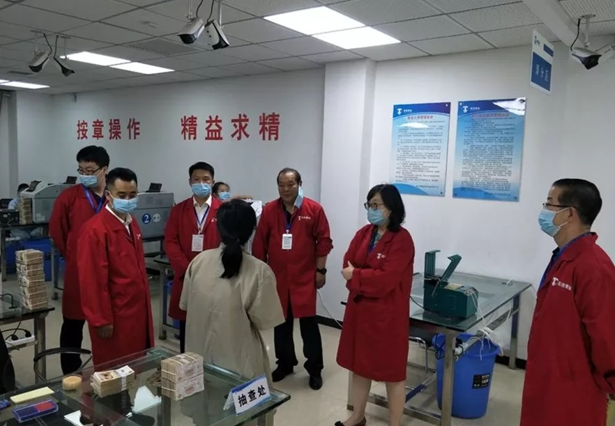 近日,人民銀行西安分行貨幣金銀處科長(zhǎng)肖睿、西安鈔票處理中心科長(zhǎng)李志勇等一行數(shù)人,在人行商洛中支黨委委員、工會(huì)主任屈志敏,貨幣金銀科科長(zhǎng)孫亞軍陪同下,蒞臨廣電運(yùn)通下屬成員企業(yè)商洛市金盾押運(yùn)有限責(zé)任公司、商洛市慧金清分服務(wù)有限公司就所轄區(qū)域現(xiàn)金處理中心工作開(kāi)展情況進(jìn)行實(shí)地考察與指導(dǎo)。