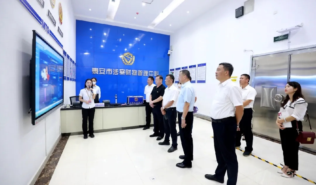 國泰保安羅來明總經(jīng)理參觀了涉案車輛保管區(qū),實(shí)地考察了管理中心各類涉案財(cái)物保管庫房和處置區(qū)以及5G遠(yuǎn)程示證室。觀看了涉案財(cái)物一體化管理和智慧管理平臺運(yùn)行宣傳片。