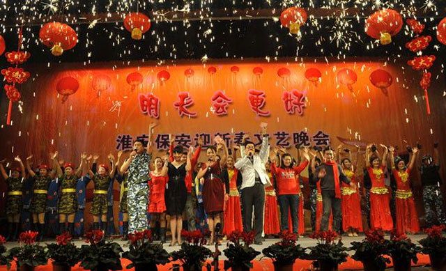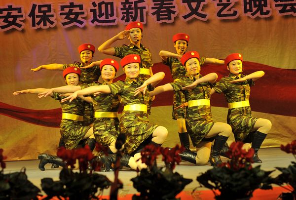 整場晚會,都是各部門員工自編自演,以自娛自樂為主。機(jī)關(guān)女職工帶來的舞蹈《印度新娘》,用優(yōu)美的舞姿展示了她們昂揚向上的精神風(fēng)貌。保安部編排的節(jié)目《鬧春》則另辟蹊徑,八位由小伙子反串的老太太步履蹣跚卻充滿風(fēng)趣,將那一份喜迎新春的歡樂散播到每一個人身上。機(jī)關(guān)男職工編排的舞蹈《窮開心》和劍蘭賓館的女員工的《拉丁舞》也博得滿堂喝彩。武裝押運中心的舞蹈《當(dāng)祖國召喚的時候》將晚會推向了一個高潮,十位頭戴鋼盔、身著迷彩服、手持鋼槍的押運隊員邁著鏗鏘有力的步伐宣誓他們的忠誠與剛毅,展現(xiàn)了武裝押運員的風(fēng)采和雄姿。