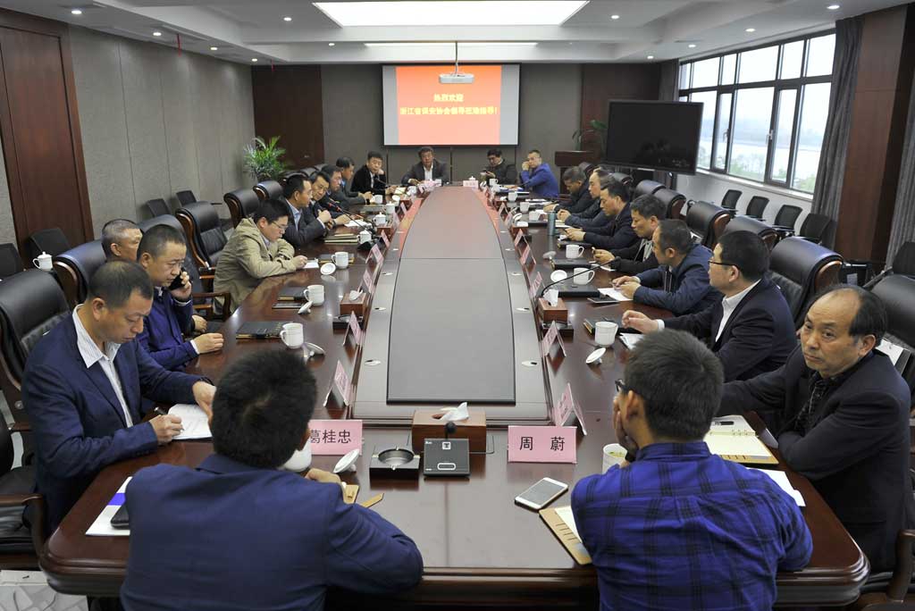 為提升保安企業(yè)管理水平,服務(wù)經(jīng)濟(jì)社會(huì)發(fā)展,進(jìn)一步加強(qiáng)浙江和江蘇兩省保安協(xié)會(huì)之間的溝通與交流,2016年4月27、28日, 由浙江省保安協(xié)會(huì)副會(huì)長(zhǎng)沈鑫祥率隊(duì)等一行16人,來(lái)到總公司進(jìn)行考察交流。江蘇省公安廳治安總隊(duì)政委兼江蘇省保安協(xié)會(huì)法人代表常志堅(jiān)、江蘇省公安廳治安總隊(duì)保安科科長(zhǎng)錢(qián)幼菁和江蘇省保安協(xié)會(huì)副秘書(shū)長(zhǎng)徐松專程從南京到淮安迎候,淮安市公安局副局長(zhǎng)唐衛(wèi)東、治安支隊(duì)支隊(duì)長(zhǎng)郝群和公司總經(jīng)理婁伯翱帶領(lǐng)公司領(lǐng)導(dǎo)班子及有關(guān)部門(mén)負(fù)責(zé)人熱情接待了考察團(tuán)一行。