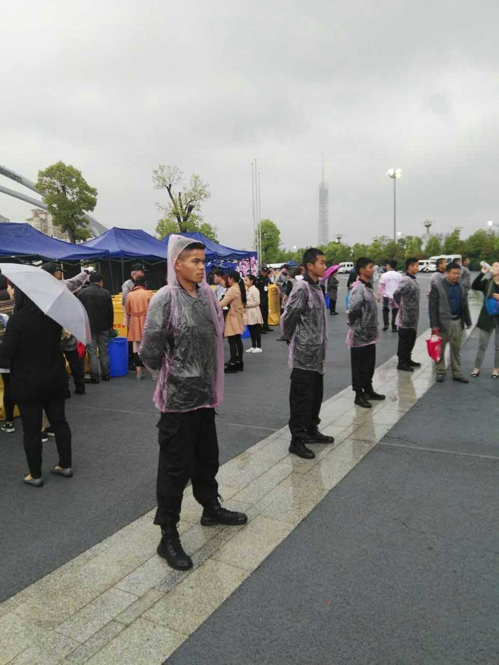 “1號點到位、2號點到位、3號點到位······”,根據(jù)指揮部的統(tǒng)一部署,從5月2日14:00開始,參加執(zhí)勤的第一批人防保安員700余人到達(dá)指定地點集結(jié),16:00所有人員全部進(jìn)入預(yù)定崗位開展工作,晚會雖然只有短短的三小時時間,但保安人員一直至深夜24:00全才陸續(xù)結(jié)束任務(wù),安全歸隊。特別在17:00開始檢票至19:30演出這段時間,天降大雨,雨水淋了外衣,汗水濕透襯衣,但所有執(zhí)勤人員沒有因為大雨而離開崗位,他們?nèi)繄允貚徫?,認(rèn)真履職,確保觀眾安全有序進(jìn)場。