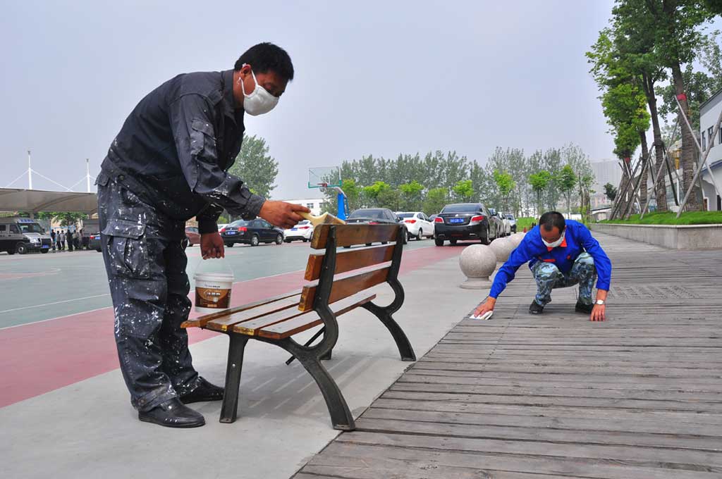 接到任務(wù)后,趙炳華、丁云清2名同志首先對(duì)所有施工現(xiàn)場進(jìn)行了察看和預(yù)算,并制定了施工方案。基于押運(yùn)樓是在老平房的基礎(chǔ)上翻新加層建筑,使得部分房間墻面脫落并出現(xiàn)裂縫,樓體墻面防水層破損,每逢下雨天便有雨水不同程度的滲漏,影響了辦公和生活秩序,加上公司院內(nèi)籃球架、單雙杠器材、木椅、木橋、樓前防護(hù)木等褪色和部分損壞的情況,以及剛建好的綜合活動(dòng)中心二樓1100多平方米木質(zhì)地板需要進(jìn)行漆化處理。面對(duì)如此工程,趙炳華、丁云清2名同志迅速作出合理安排和應(yīng)對(duì)措施,開始著手對(duì)樓體做好防水處理,同時(shí)將1至5層樓的隊(duì)員宿舍、辦公室、更衣室等所有房間1000多平方米的墻面進(jìn)行打磨粉刷,并對(duì)公司剛建好的活動(dòng)中心二樓1100多平方地面進(jìn)行多次漆化處理,以及房屋里外設(shè)施進(jìn)行了修繕。