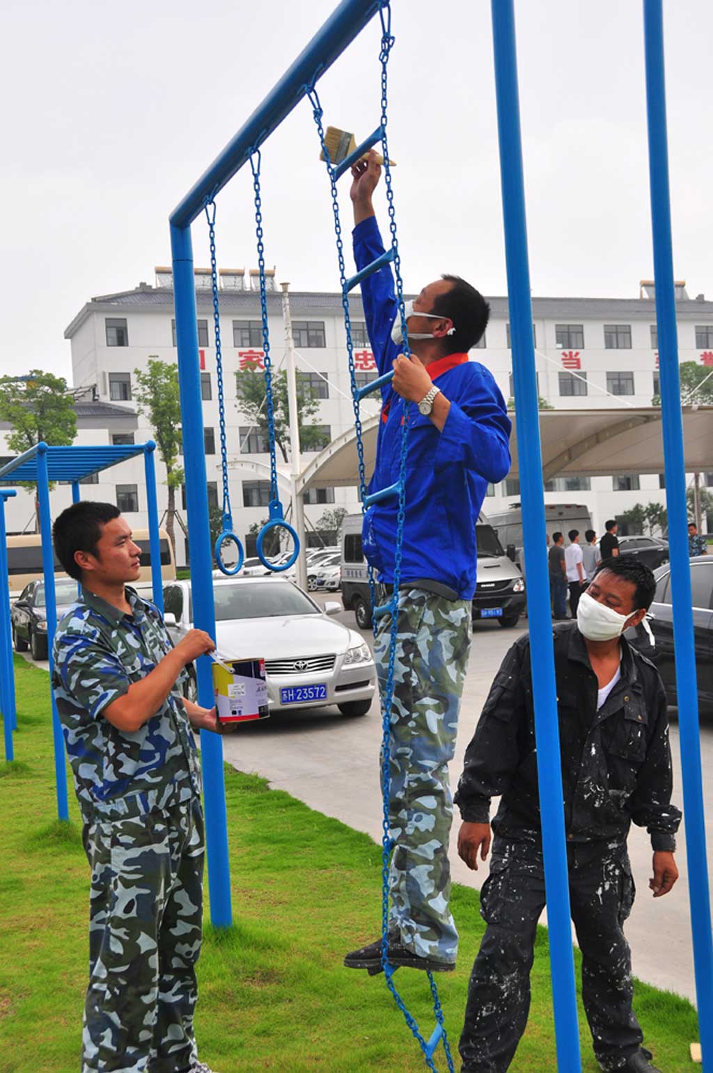 由于時(shí)間緊、工程量大、任務(wù)重,為了提前完工,他們在保證工程質(zhì)量的前提下,放棄了一切休息時(shí)間,不顧天氣炎熱,加班加點(diǎn),全身心投入到地板油漆的粉刷、押運(yùn)樓墻面修繕和粉刷之中。