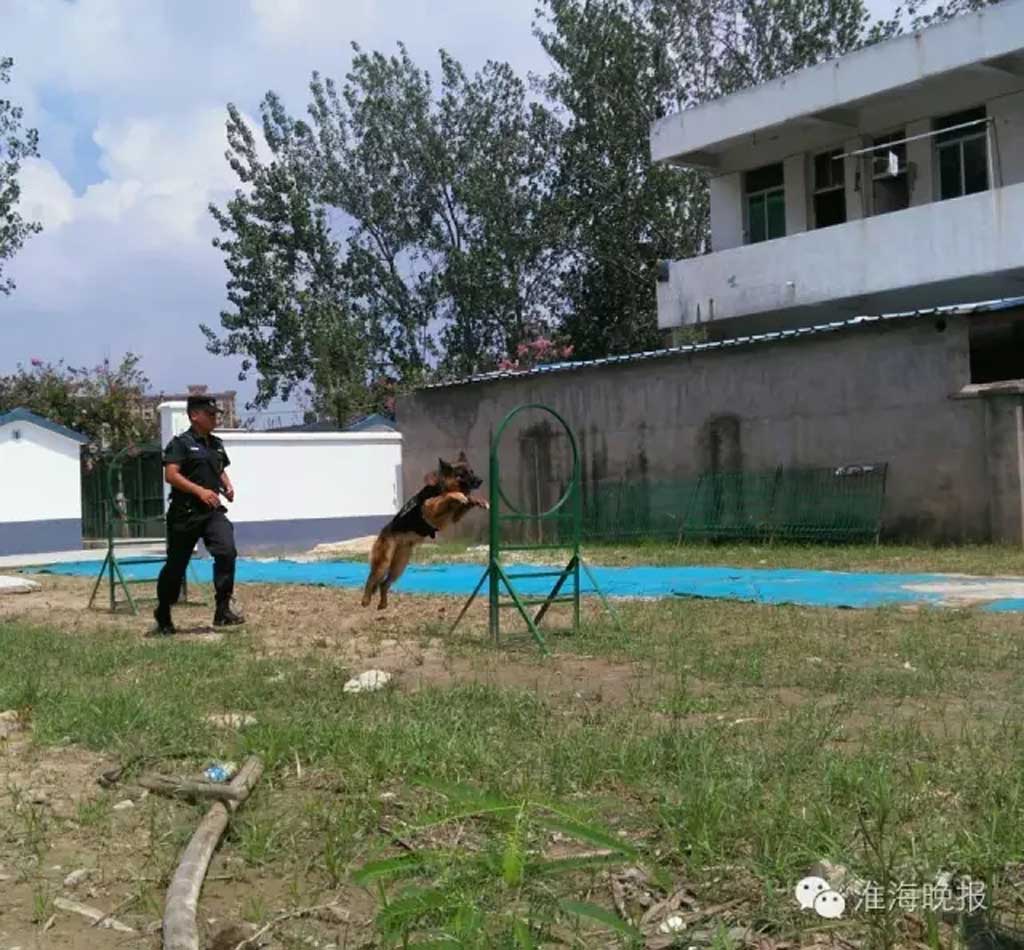 8月12日一大早,炙熱的太陽剛剛露頭,市區(qū)翔宇大道上的淮安市保安服務(wù)總公司犬防大隊里,訓(xùn)導(dǎo)員和警犬已經(jīng)展開了訓(xùn)練。這里也是淮安市公安局警犬基地,集中飼養(yǎng)、訓(xùn)導(dǎo)全市所有的警犬。