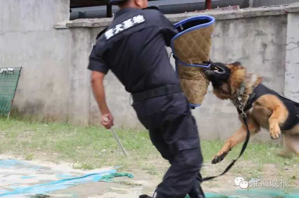 翟強(qiáng)指著自己對“一郎”喊道“注意”,“一郎”立刻虎視眈眈地注視著翟強(qiáng)。“襲!”翟強(qiáng)話音剛落,“一郎”餓虎撲食般沖向翟強(qiáng),高高躍起,死死咬住翟強(qiáng)胳膊不放。翟強(qiáng)掙扎著,用盡全力揮動胳膊,想要將一郎甩下來。隨著翟強(qiáng)的甩動,一郎四腳騰空轉(zhuǎn)著圈,卻始終不放口。一兩分鐘后,翟強(qiáng)停在甩動,喊了聲“放”,“一郎”這才松口。