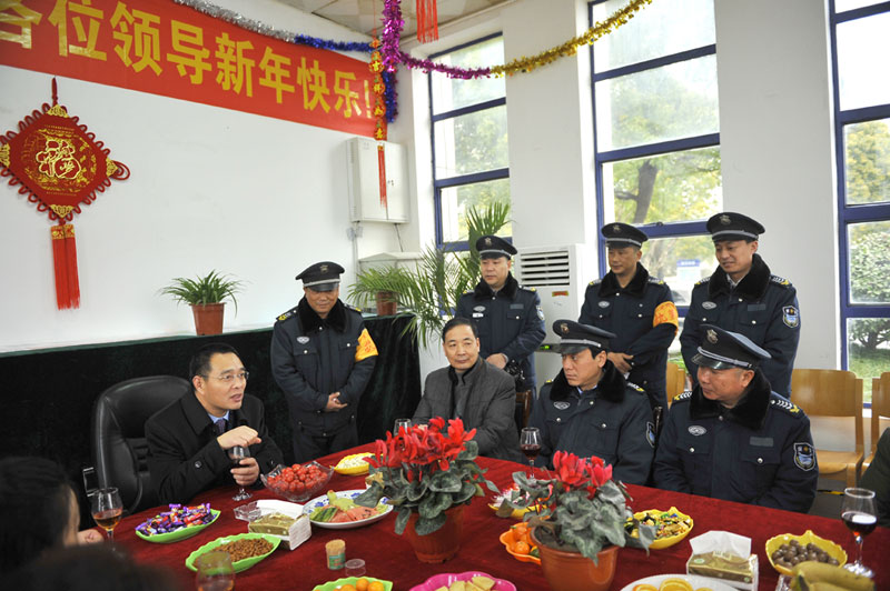 當(dāng)天上午,在人防管理中心總監(jiān)王錦春陪同下,婁伯翱總經(jīng)理慰問(wèn)了駐市審批中心、淮陰卷煙廠、市財(cái)經(jīng)學(xué)院、市護(hù)理學(xué)院等人防執(zhí)勤點(diǎn)以及銀盾駕校等部門(mén)堅(jiān)守崗位的保安員工。在每個(gè)執(zhí)勤點(diǎn),婁伯翱總經(jīng)理都與堅(jiān)守崗位的保安員親切握手,并詳細(xì)詢問(wèn)隊(duì)員的工作和生活情況,向堅(jiān)守崗位的隊(duì)員致以新春的問(wèn)候,祝福大家新春快樂(lè)、全家幸福!并勉勵(lì)大家在新的一年里勤奮工作,敬業(yè)奉獻(xiàn),為淮安保安工作再上新臺(tái)階作出更大的貢獻(xiàn)!