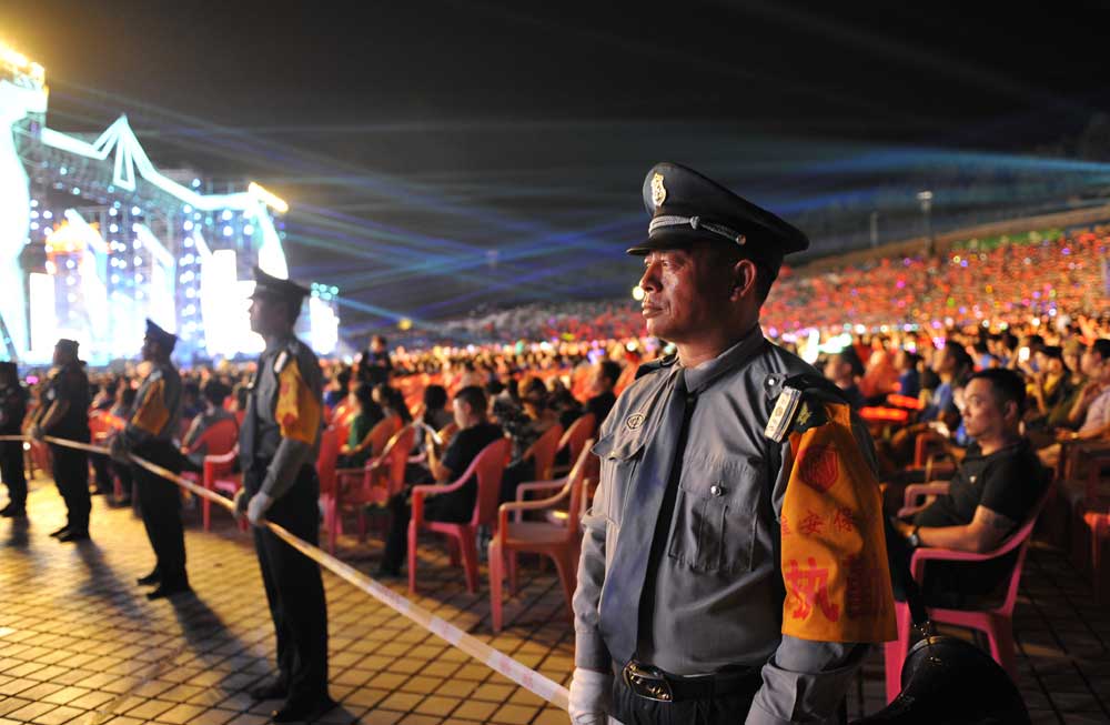 激情的六月,綠色的盱眙。6月12日19:30分,第十八屆中國(guó)•盱眙(金誠(chéng))國(guó)際龍蝦節(jié)“登高望遠(yuǎn)”群星演唱會(huì)在盱眙縣中國(guó)龍蝦廣場(chǎng)隆重舉行。受主辦方邀請(qǐng),江蘇省淮安市保安服務(wù)總公司派出700余人承擔(dān)此次晚會(huì)安保工作。
