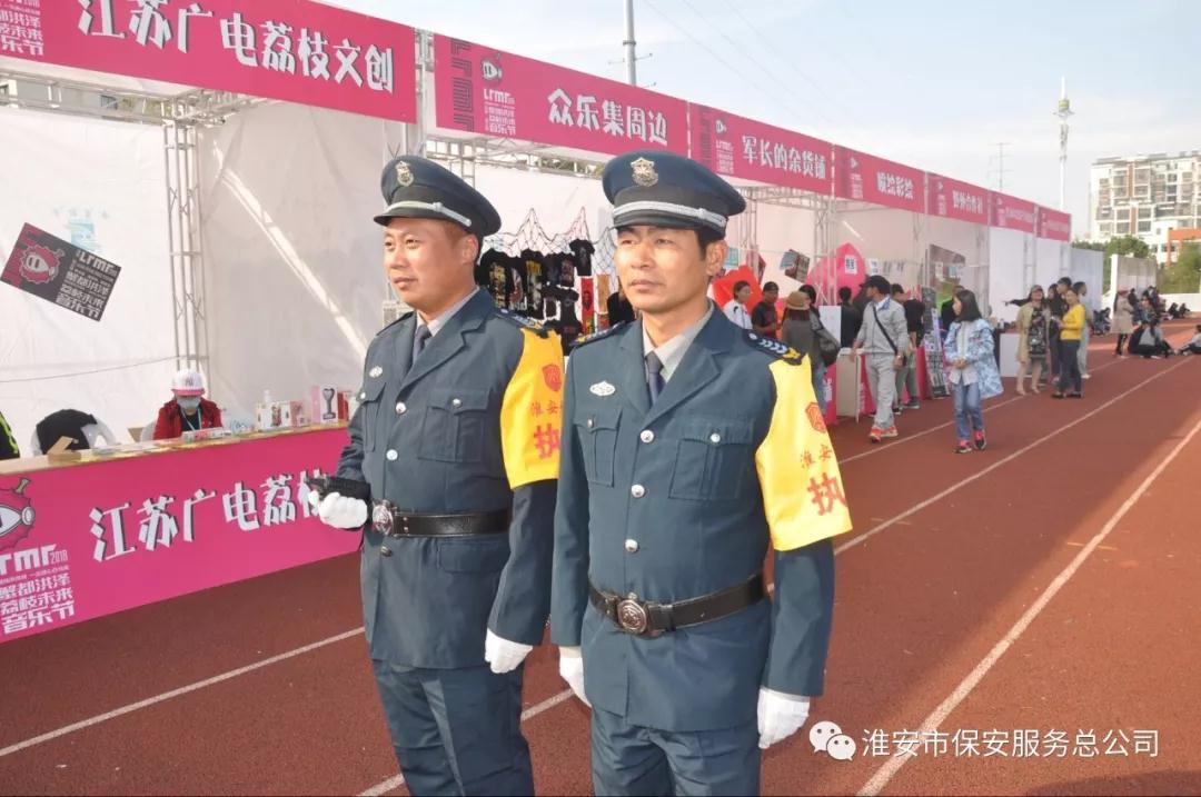 總公司派出130余名保安力量,承擔音樂節(jié)的預檢票口、檢票口檢票、安檢、貴賓入口以及內(nèi)場和舞臺區(qū)域的管控和秩序維護等工作。此次音樂節(jié)從中午13:30開始直至21:40,執(zhí)勤時間長、人員環(huán)境復雜、工作任務艱巨。總公司人防管理中心130余名保安員于中午12時準時進入預定崗位,直至音樂節(jié)結(jié)束,長達8個小時期間,淮安保安人堅守崗位、認真履職。黃紅相間“淮安保安”靚麗的臂章在各個崗位上,成為音樂節(jié)的一道亮麗風景?;窗脖0驳膰乐斪黠L,嫻熟的業(yè)務能力,文明的服務態(tài)度,得到主辦單位的肯定。