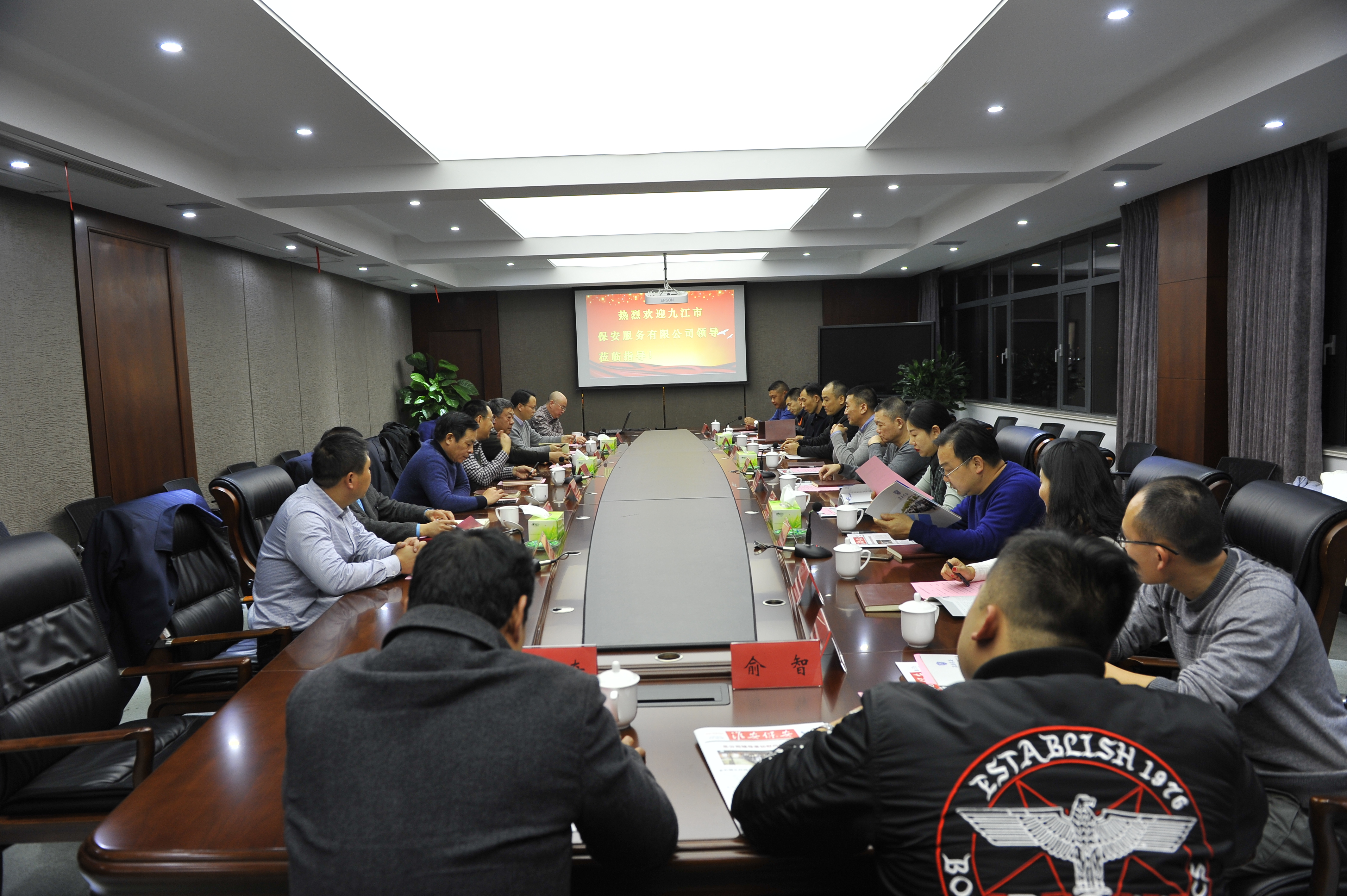 2018年12月5日至6日,江西省九江市保安服務(wù)有限公司董事長、總經(jīng)理方東森和副總經(jīng)理熊武強(qiáng)、劉紅年以及財(cái)務(wù)總監(jiān)謝丹莉等一行12人蒞臨總公司考察交流,總公司總經(jīng)理婁伯翱、副總經(jīng)理王克、徐文剛和行政中心、人力資源中心、人防中心、技防公司等部門負(fù)責(zé)人參與座談交流。