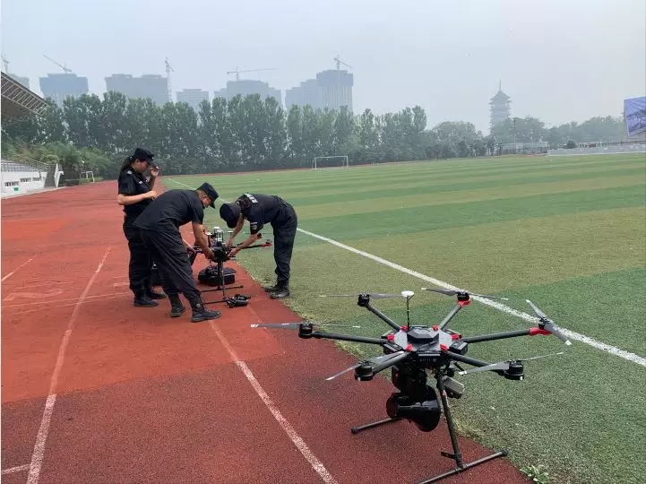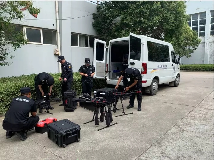 到達(dá)指定區(qū)域后,無人機(jī)操控員立即進(jìn)行了分工,并對設(shè)備進(jìn)行連接調(diào)試。早上5時,所有參演人員按照指揮部指令到達(dá)指定位置。7點(diǎn)20分,蘇北跨區(qū)域拉練正式開始。負(fù)責(zé)空中航拍的無人機(jī)操控員迅速將演練現(xiàn)場的實(shí)時畫面?zhèn)鬏斨连F(xiàn)場指揮部及省公安廳;演練過程中,發(fā)現(xiàn)“上訪人員”用民用無人機(jī)對現(xiàn)場進(jìn)行拍攝和干擾,無人機(jī)反制小組迅速做出反應(yīng),操控?zé)o人機(jī)反制設(shè)備對民用無人機(jī)進(jìn)行管制和驅(qū)離;隨著“上訪人員”人數(shù)的逐漸增多,現(xiàn)場指揮員要求飛控隊(duì)操控?zé)o人機(jī)載喇叭進(jìn)行高空喊話和宣傳相關(guān)的法律法規(guī),同時對“上訪群眾”進(jìn)行疏導(dǎo);由于現(xiàn)場部分“上訪人員”情緒過激,出現(xiàn)燒、搶、打、砸等惡劣狀況發(fā)生,態(tài)勢愈發(fā)嚴(yán)重,指揮部立即下達(dá)指令,無人機(jī)載著煙霧彈、催淚彈等升空,對人員密集的區(qū)域進(jìn)行投彈,成功驅(qū)散了現(xiàn)場的打砸人員。