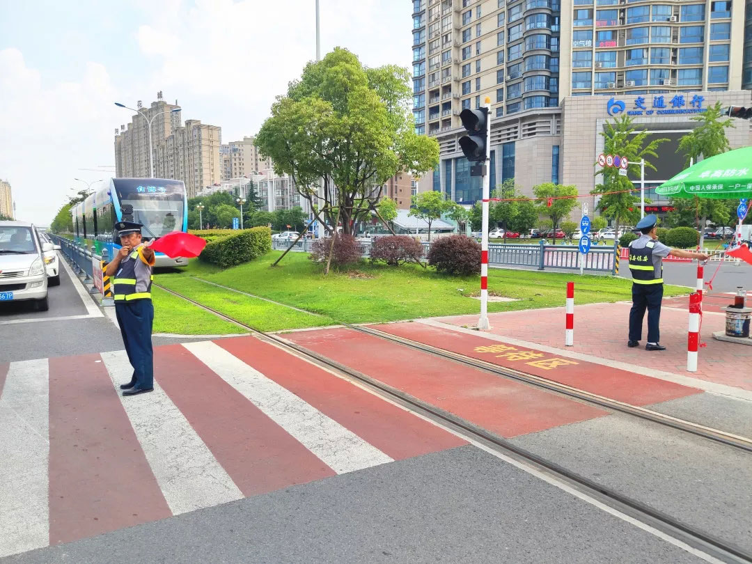 入伏以來,烈日當(dāng)頭,街頭車輛卷起的滾滾熱浪撲面而來,讓人喘不過氣。在淮安現(xiàn)代有軌電車的戰(zhàn)線上有這么一群人,頂著烈日、迎戰(zhàn)高溫、揮舞旗幟、吹響口哨、引導(dǎo)行人。這就是淮安保安派駐在有軌電車各主要道口的引導(dǎo)員們。