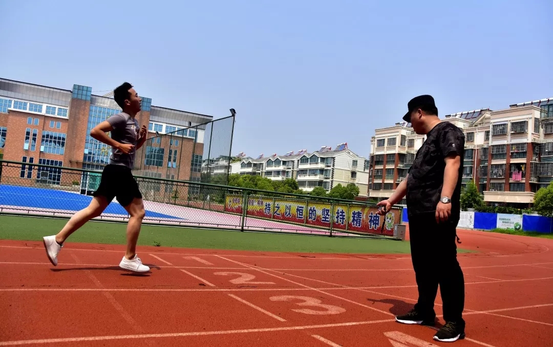 上午9點,氣溫明顯飆升,讓人感到不適,體能測試正式開始,測試的科目有10米×4折返跑(10.4S達標)、俯臥撐(50個達標)、仰臥起坐(46個達標)、1500米(5.51S達標)。