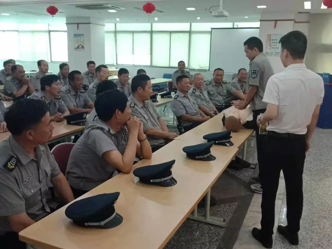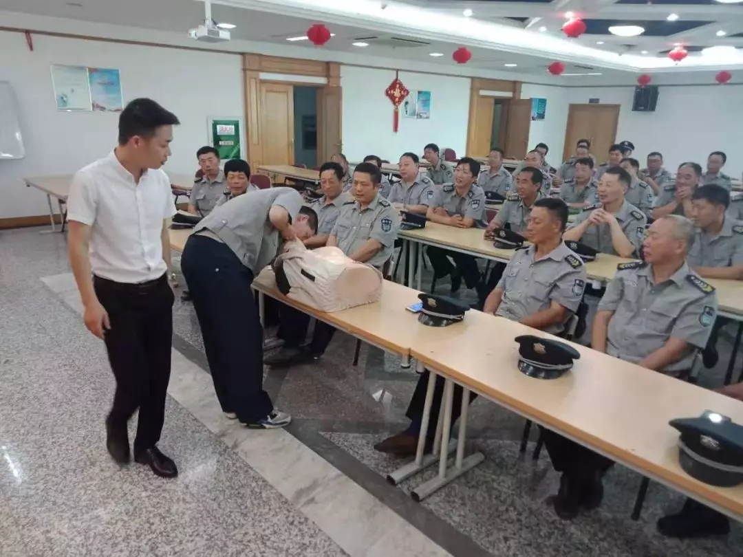 孫老師詳細講解了突發(fā)事件現(xiàn)場處理中,人工呼吸、胸外按壓的方法與步驟,并挑選骨干現(xiàn)場互動演示。在活動過程中,孫老師針對保安員的年齡結(jié)構(gòu)及職業(yè)性質(zhì),詳細分析講授了常見職業(yè)病的預(yù)防和改善、慢性疾病的預(yù)防、心理健康知識和中醫(yī)養(yǎng)生知識。