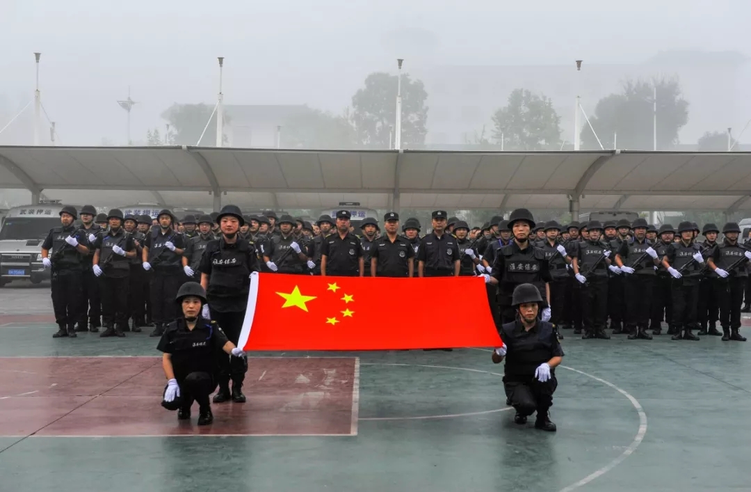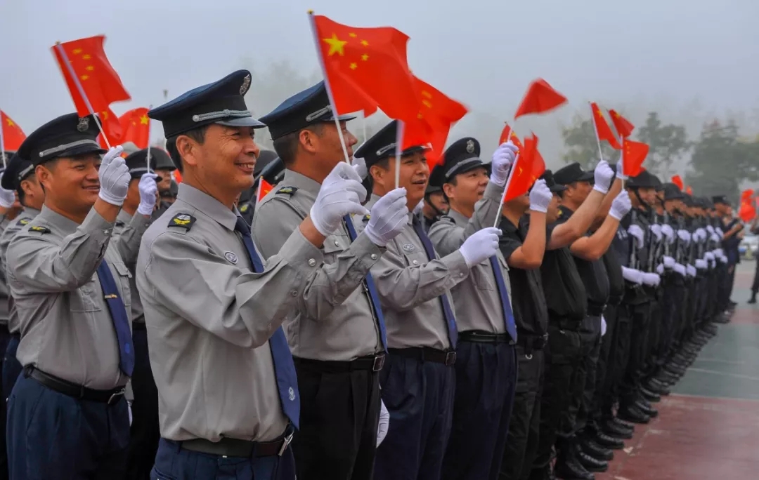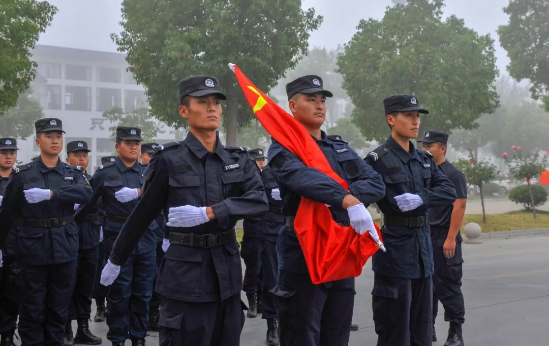 上午6時28分,升旗儀式正式開始。一名旗手、兩名護旗手及10余名保安班學(xué)員方隊邁著整齊的步伐,護送國旗正步走到升旗臺,伴隨著雄壯的國歌聲響起,徐徐將鮮艷的五星紅旗冉冉升起??偣驹趫龅母刹柯毠ぴ谏炫_前隊列整齊、肅穆而立,滿懷敬意地向國旗行注目禮,齊聲高唱國歌,獻上對祖國最深、最美好的祝福。