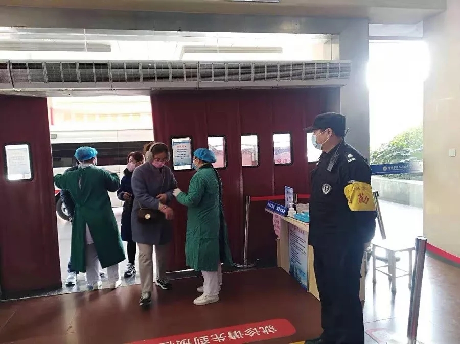 保安隊(duì)伍嚴(yán)把客戶單位人員和車輛出入關(guān),對進(jìn)入執(zhí)勤區(qū)域的人員進(jìn)行測溫登記和車輛消毒,配合客戶單位對辦公場所等公共區(qū)域進(jìn)行消毒防控;駐醫(yī)院保安員在執(zhí)勤中認(rèn)真做好就診人員體溫測量,疏散、引導(dǎo)就醫(yī);駐銀行保安員在執(zhí)勤中督促辦理業(yè)務(wù)的客戶做好自我防護(hù),并提醒佩戴防護(hù)口罩,協(xié)助銀行對客戶進(jìn)行體溫測量,做好安全防護(hù)措施。
