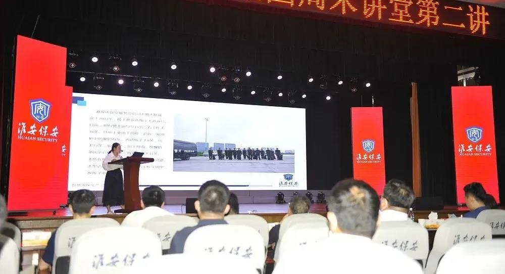 活動中首先播放了保安服務總公司宣傳片。與會者通過宣傳片進一步了解了保安總公司企業(yè)情況和業(yè)務發(fā)展規(guī)模。隨后,保安總公司副總經理黃欣晨、技防部副經理葛金棟、犬防大隊警犬訓練員胡偉芳三位兼職講師為大家分享了工作中的經驗和心得。