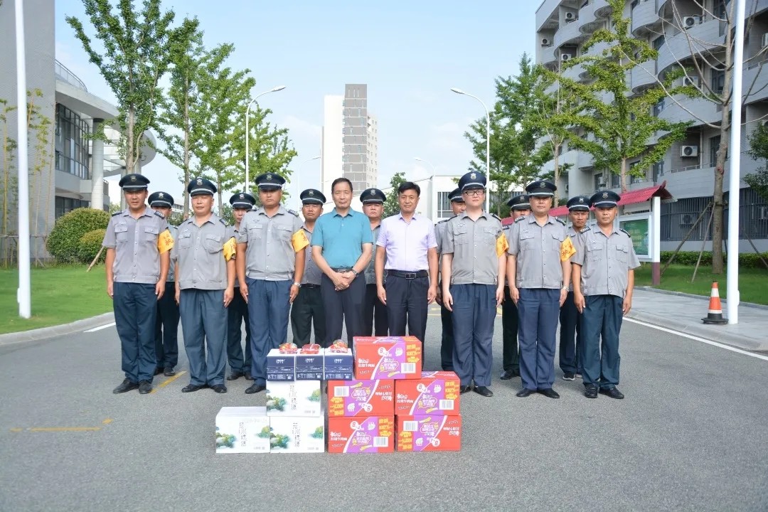 副總經(jīng)理王錦春來(lái)到人防中心駐金融中心、有軌電車(chē)、淮陰卷煙廠、江蘇鑫源薄片有限公司、淮安市護(hù)理職業(yè)技術(shù)學(xué)院5個(gè)執(zhí)勤點(diǎn)以及犬防大隊(duì)、銀盾供應(yīng)鏈物流公司,慰問(wèn)了在高溫下堅(jiān)守一線的執(zhí)勤人員,為一線人員送去了降溫防暑物品,給他們送去了總公司的關(guān)愛(ài)。