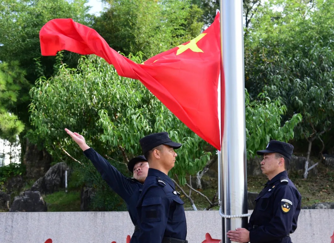 上午9時,三名旗手邁著整齊矯健的步伐,護衛(wèi)著國旗入場,伴隨著雄壯的國歌,鮮艷的五星紅旗冉冉升起,迎風(fēng)飄揚。參加儀式的全體人員在升旗臺前列隊整齊、肅穆而立,面向國旗莊嚴行禮,共同祝愿偉大祖國更加繁榮昌盛!祝愿國聯(lián)保安更加壯大輝煌!祝愿全體員工更加幸福美滿!